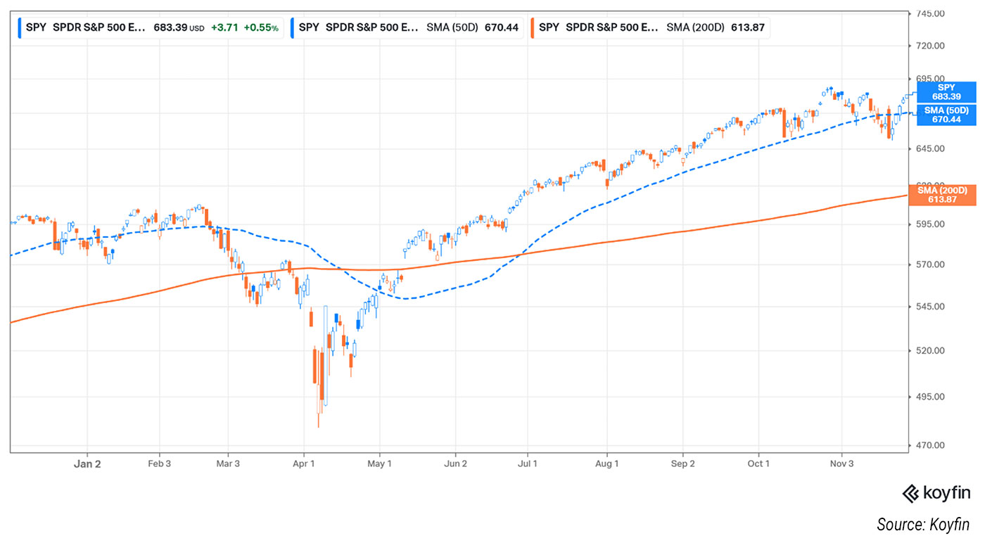 The SPDR S&P 500 ETF (SPY), which tracks the performance of the S&P 500, finished the week above both its 50-day and 200-day moving averages.