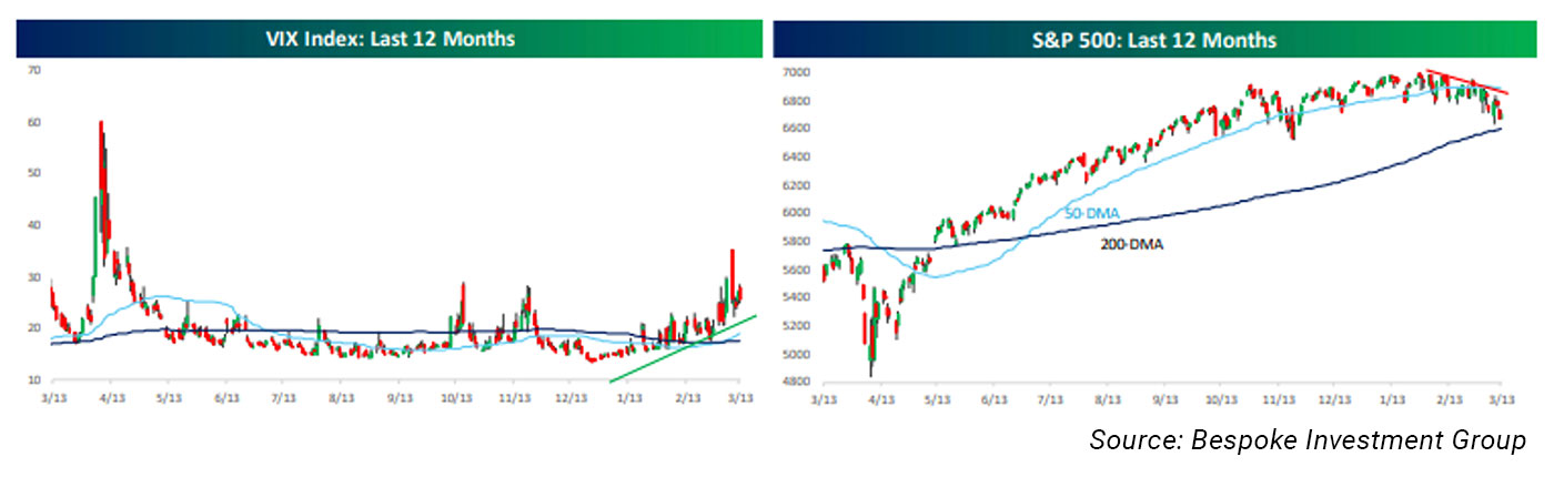 It is no coincidence that geopolitical events leading up to the Iranian attacks have contributed to the increased volatility in equities. With these developments occurring in the heart of the Middle East, oil prices have soared, and fears of inflation have increased. This, in turn, has pressured equities.