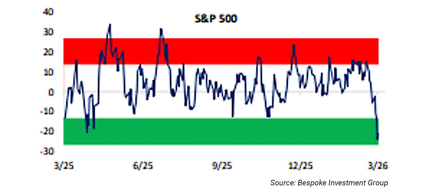 The bottom line: With conflict in the Middle East and rising oil prices and interest rates, uncertainty abounds. The stock market seems likely to fall from here, but contrarian measures suggest a bounce first. Whether that successfully defends the long-term uptrend or instead proves to be a short-term bounce will likely depend on whether the conflict, which is driving the uncertainty, comes to a speedy end.