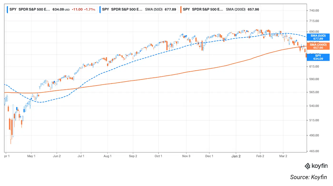 The SPDR S&P 500 ETF (SPY), which tracks the performance of the S&P 500, finished the week below both its 50-day and 200-day moving averages.