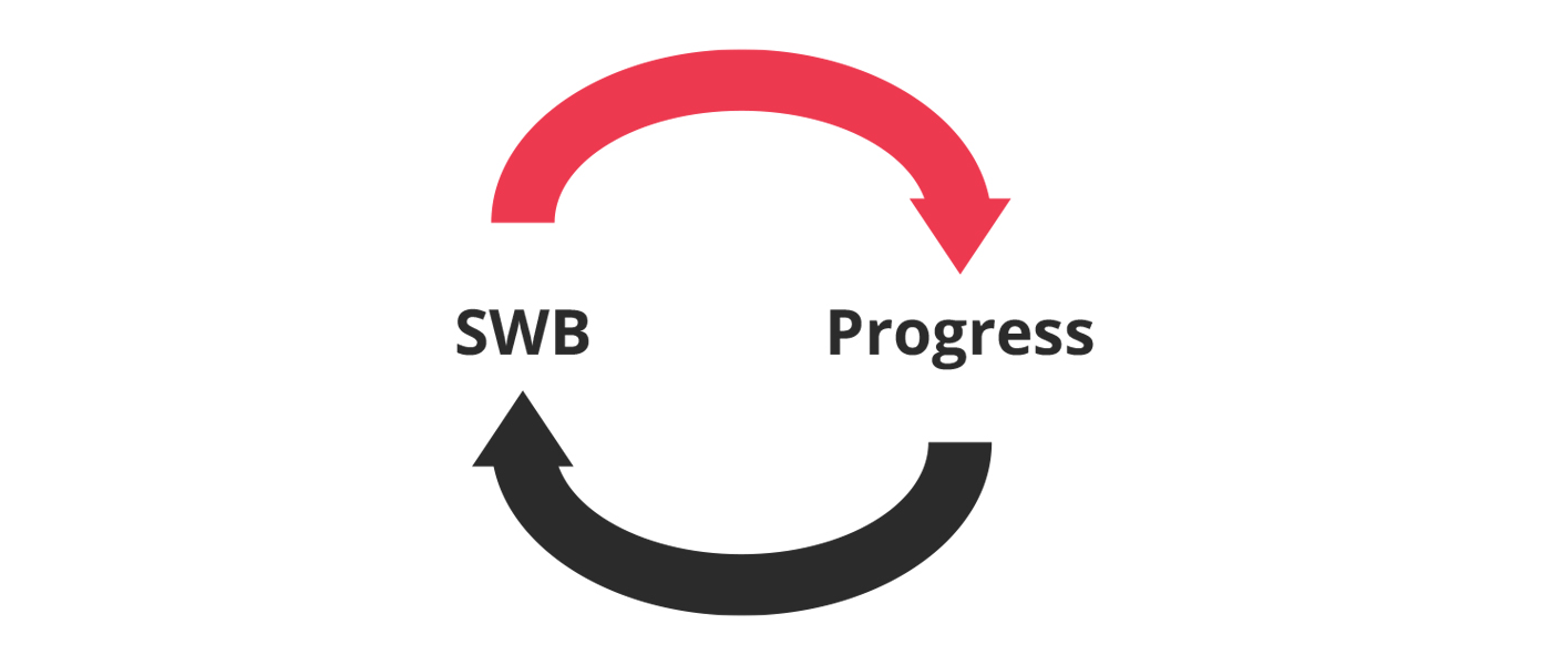 This image conveys the concept that as we make progress toward our goal, we reinforce and expand our sense of well-being—and as our sense of well-being increases, it enhances our ability to progress and reach our goals.