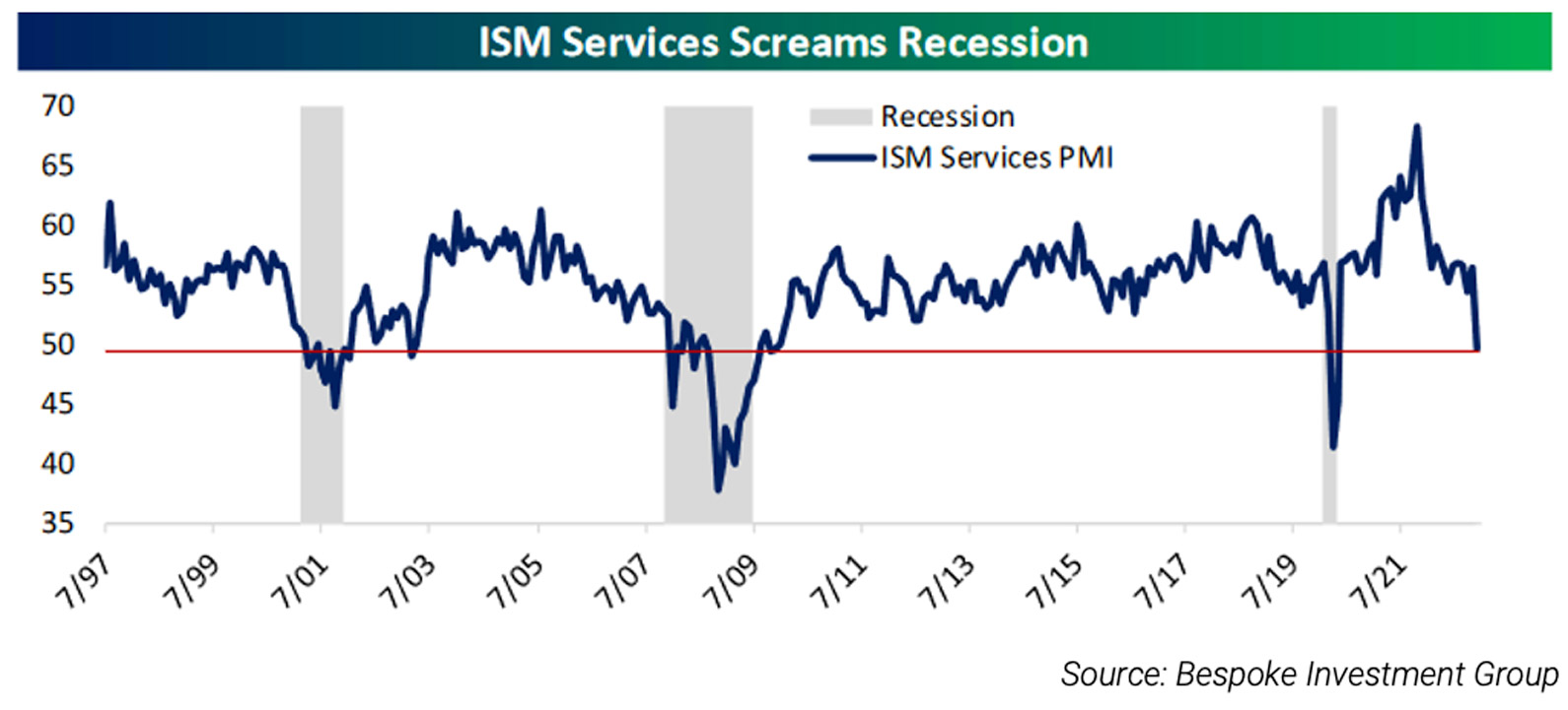 The second con is that a variety of indicators that tend to be correlated with recessions are signals that economic contraction is coming. As mentioned, Friday’s ISM Services came in below 50.0. The only time a reading below 50.0 was logged without a recession was in the aftermath of the 2001 recession after the U.S. announced the invasion of Iraq.
