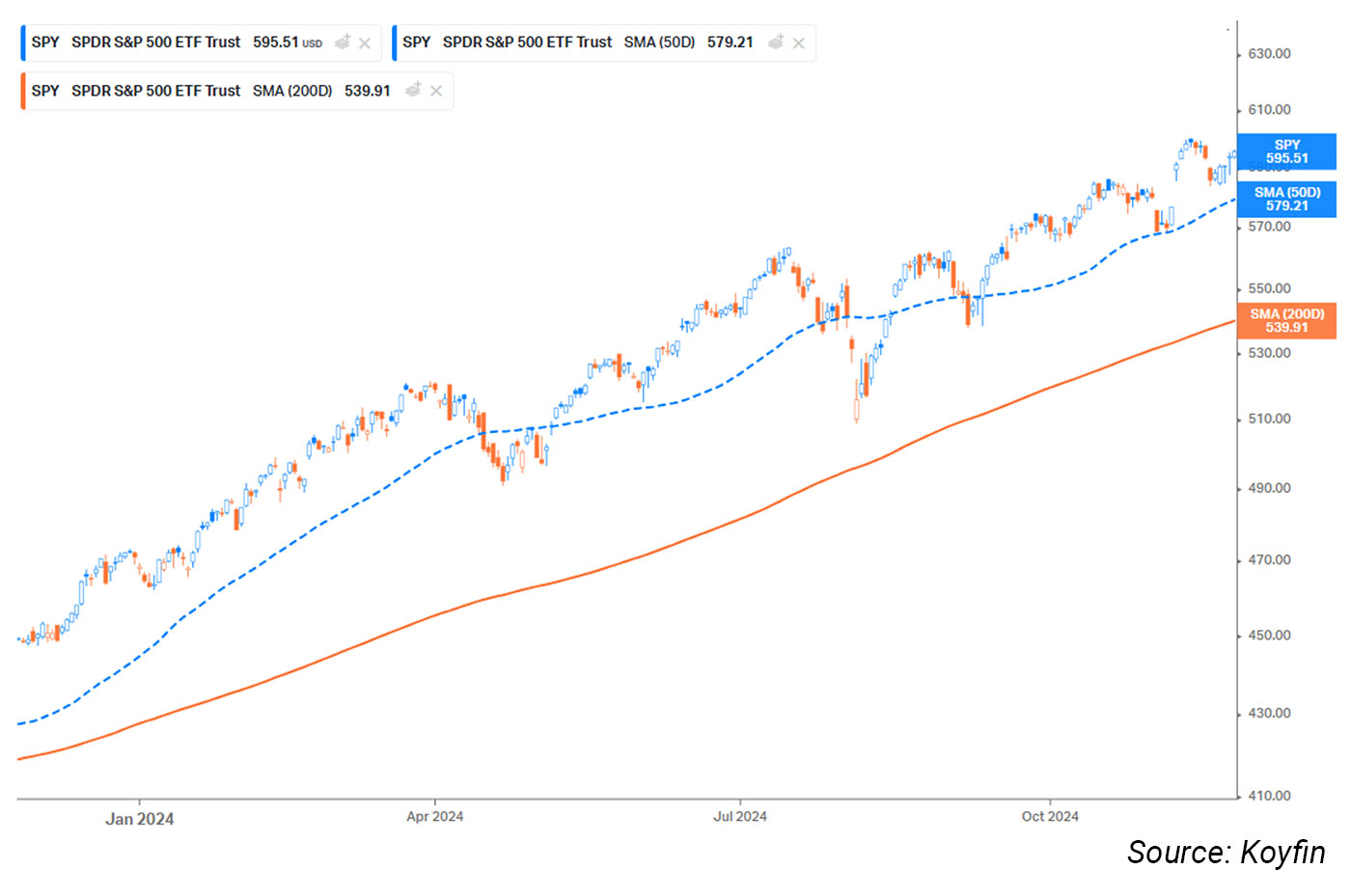The SPDR S&P 500 ETF (SPY), which tracks the performance of the S&P 500, finished the week above both its 50-day and 200-day moving averages.