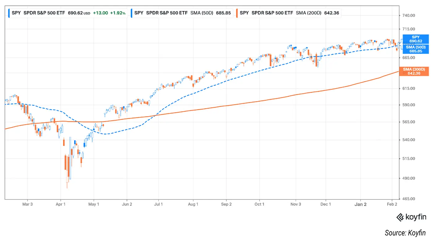 The SPDR S&P 500 ETF (SPY), which tracks the performance of the S&P 500, finished the week above both its 50-day and 200-day moving averages.