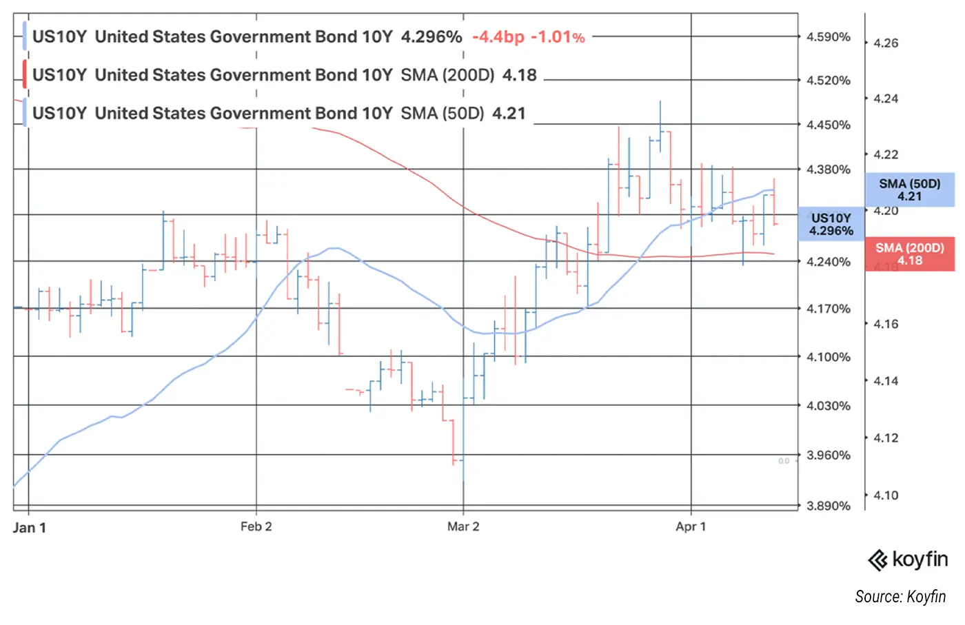 Last week’s U.S. economic data painted a mixed picture from a macro standpoint. The ISM Services PMI came in at 54.0 versus the expected 54.8, showing that the service side of the economy is still expanding, though at a slower pace. Private-sector employment added 62,000 jobs in March, according to ADP. The durable goods report was mixed: Core durable goods were up 0.8%, while headline durable goods fell 1.4%. Meanwhile, the minutes from the Federal Open Market Committee’s March 17–18 meeting reinforced that the Fed is still closely watching inflation and the broader macro outlook.